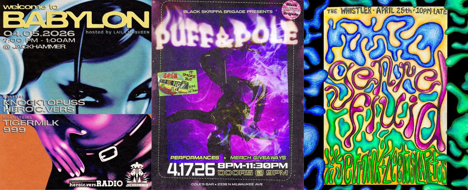a couple noteworthy april notables: 1) I’M HAVING A PARTY AT MY FAVORITE SPOT IN CHICAGO THIS MONTH!!!! meet me and my guest DJ Zeetus Lapetus on the dance floor for the debut of genrefluid on saturday, april 25 >:))) more details below~~~