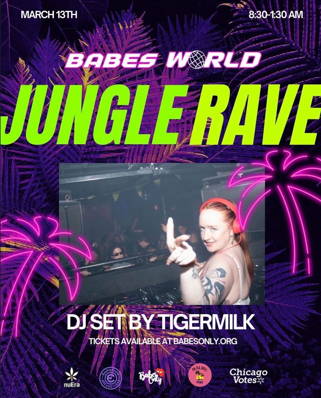 fiiiinaalllyy! a jungle music party in chicago that i’m DJing!! come dance and get your inner junglist on with the babes only gals + me + all the talented chicago djs & performers on the lineup. 🔥😝🔥